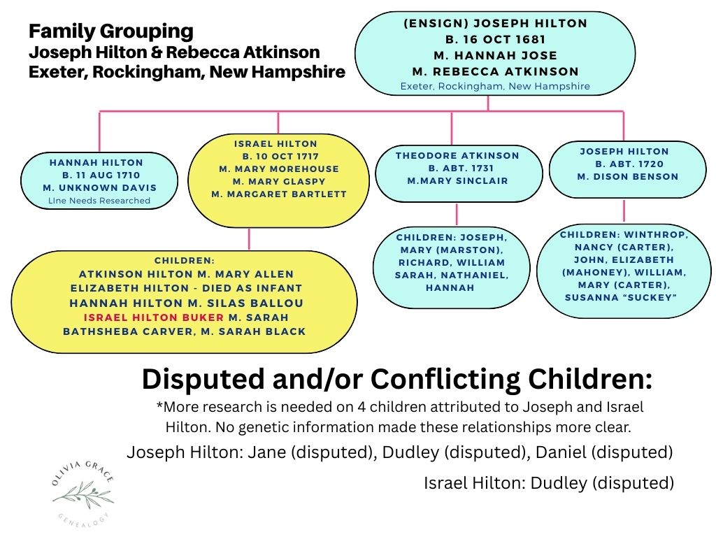 Answer: There is strong autosomal and YDNA evidence supporting that Joseph Hilton is the ancestor along the Y line of Israel Hilton Buker and this can now be adopted as fact based on genetic science evidence.